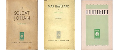 The presence of Multatuli, the only Dutch author, can perhaps be explained by the presence of a French-speaking Dutch author in the publishing house's collection. Indeed, Neel Doff, whose Jours de famine et de détresse was published by Editions de la Toison d'Or in 1943, and who had herself tried her hand at translating Multatuli, was a faithful supporter of his work. Additionally, the themes of Max Havelaar are similar to those favored by the publishing house: escape, war stories, historical novels, anti-clericalism, denunciation of the bourgeois order [Fincoeur 1997:38].